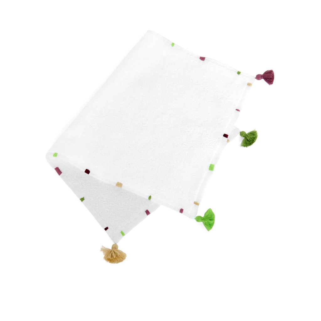 Les pompons aux couleurs de Maison Eole apportent une touche d’originalité à chaque pièce, tandis que le coton 100% naturel offre une douceur et une légèreté inégalées.